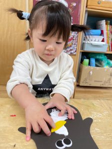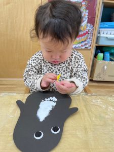 指先を使ってシールを剥がしたり、粘土をつまんだり、糊にも挑戦しています。