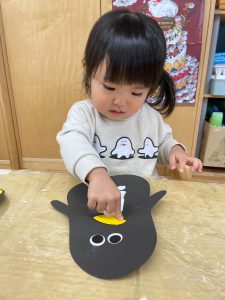 製作あそびの時はいつも興味津々で、すごく集中してやっています。