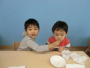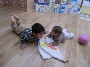 ひよこ組のお友だちにも優しくしてあげる、お兄さん、お姉さんの姿に嬉しく思います。