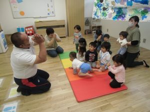 最初は「さかながはねて」という手遊びをしました 🐟💦