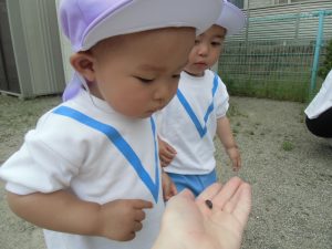 素敵な出会い2020年5月30日(土) だんごむしみーつけた。 触ってみよう。 「つん、つん、つん。」 おたまじゃくしも見つけたよ。 散歩に出かけると色々な物に出会えます。 今日はどんな発見があるかな…(わくわく) « 世界に一つだけの素敵なあじさい 絵本の中から出てくるものは… »