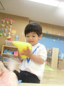 早速、うさぎ組さんも触ってみます。まずは袋の上から・・・