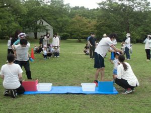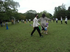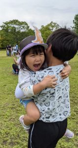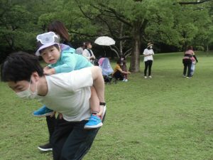 お父さん、お母さんに抱っこやおんぶ、肩車をしてもらい走って次のお友だちとバトンタッチ ❕
