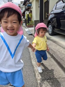 仲良く手を繋いでいました。歩けるかな❔という私たちの心配をよそに・・・