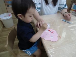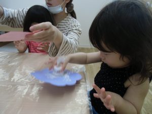 今日は、絵の具遊びをしました。