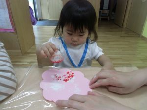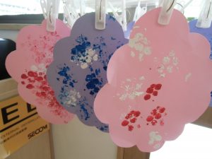 スタンプをポンポン!と押して花びらの模様をつけたよ。