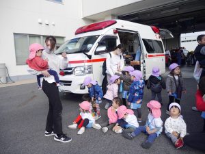 救急車の中に入らせていただいたり、消防士さんの粋な計らいでサイレンも鳴らしてもらいました。