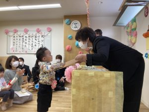 その後は 賞状をもらいました 🎈 おじきをして 「ありがとう!」と受けっとていました❗