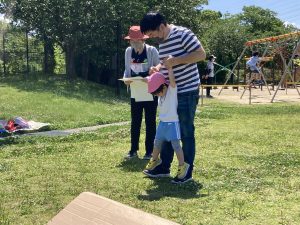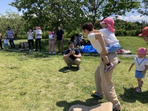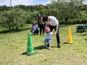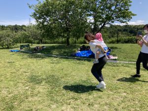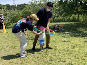 その後 は こぐま組 と うさぎ組 に 別れて 親子競技 を 行いました .