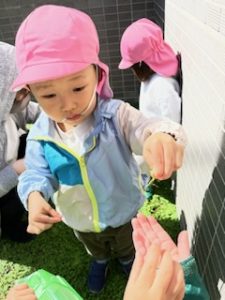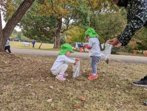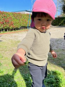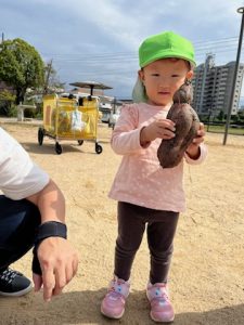 飛行機雲を見つけたり、さつま芋を触ったり、落ち葉を見つけたり、