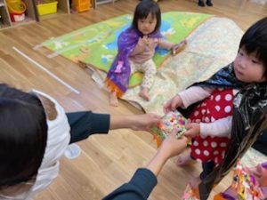 これはおやつ?こぐま組さんにはおやつの前にびっくり箱のプレゼント🎁(笑)
